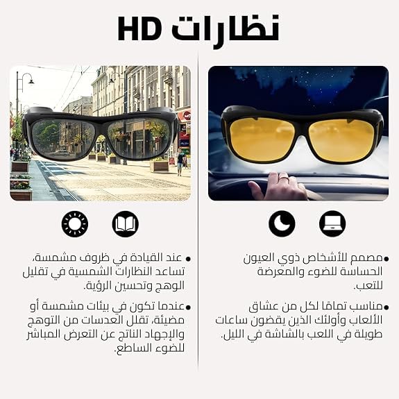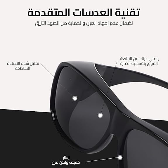 Generic - نظارات شمسية تناسب النظارات الطبية بعدسات عالية الدقة خفيفة الوزن ملتفة للحماية من الاشعة فوق البنفسجية للقيادة والاستخدام الخارجي