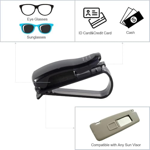 Generic - حامل نظارات شمسية بمشبك يثبت على حاجب الشمس للسيارة مشبك مع لبطاقة التذاكر لون أسود