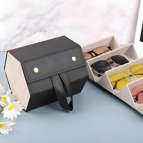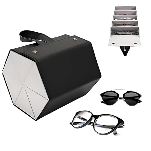 Generic - منظم نظارات شمس - حاوية تخزين جلدية أنيقة للسفر مع ست فتحات، تصميم صغير وقابل للطي، مثالية لحماية وفرز أزواج متعددة من نظارات شمس ونظارات قراءة