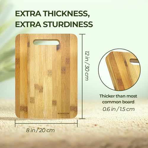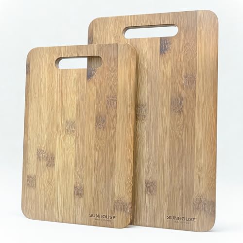 Sunhouse - لوح تقطيع من الخيزران الطبيعي، لوح تقطيع خشبي سميك ومتين للمطبخ، غير سام، صديق للسكاكين وسهل التنظيف من صن هاوس، طقم من قطعتين مقاس 30 سم× 20 سم و35 سم× 22 سم