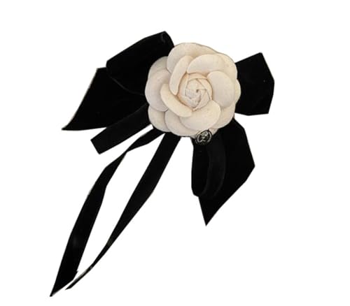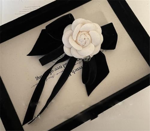 sunjiaqi - بروش زهرة الكاميليا، دبوس لابيل على شكل زهرة قماش مع فيونكة بلون أسود، بروش أنيق للنساء لتزيين السكارفات والطواقي والبدلات وفساتين السهرة وحفلات الزفاف من سونجياكي