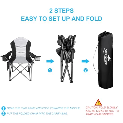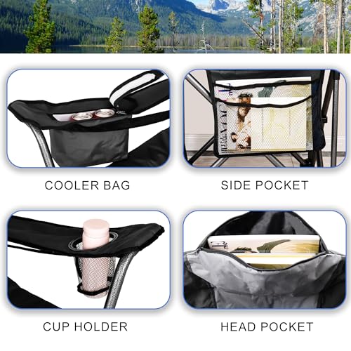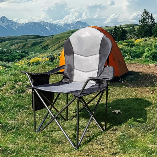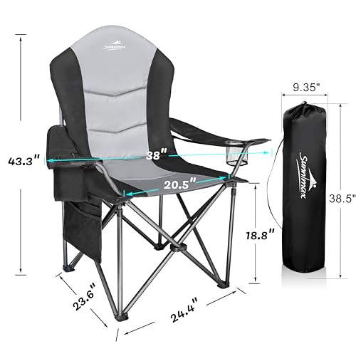 SUNNIMAX - كرسي تخييم مبطن بالكامل من صنيماكس، يدعم 181 كجم، كرسي حديقة خارجي كبير بتصميم شديد التحمل مع شنطة تبريد وجيب جانبي وحامل أكواب (1، أسود ورمادي)