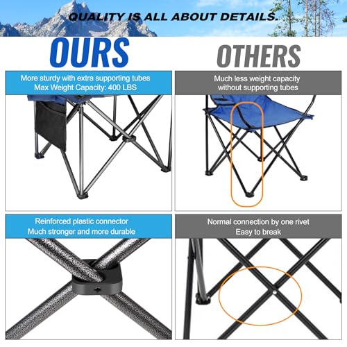 - 【هيكل شديد التحمل】يتميز كرسي التخييم الخاص بنا بهيكل شديد التحمل، ويتميز بتصميم أنبوب أوسع وأكثر سمكًا يميزه عن باقي المنتجات. مع سعة وزن مذهلة تصل إلى 181 كجم، فإنه يضمن الثبات والمتانة على أي تضاريس، مما يجعله الخيار الأمثل لأولئك الذين يبحثون عن الموثوقية في المقاعد الخارجية.