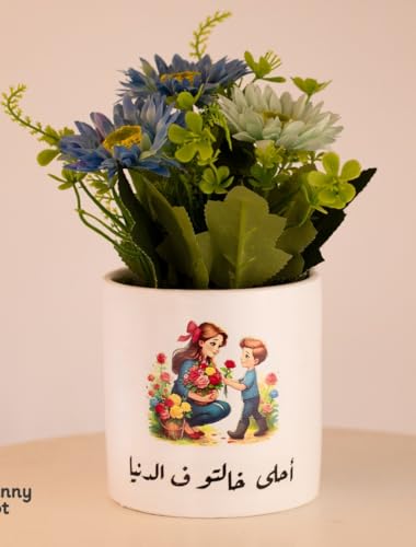 Generic - Sunny Pot Decorative Flower Pot, White, Ceramic, Arabic Calligraphy, Mother and Child Theme, Home Decor