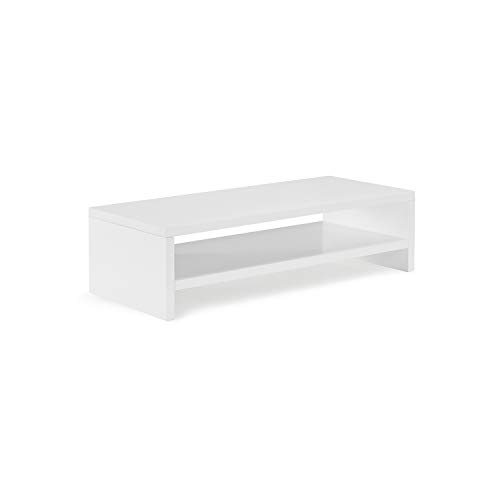 Sunon - حامل شاشة الكمبيوتر من الخشب بطبقتين، منظم تخزين لسطح المكتب وحامل تلفزيون صغير للاب توب والطابعة والكمبيوتر مقاس 42.5 × 23.5 × 14 سم (أبيض) من سونون