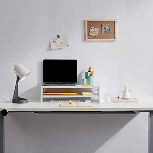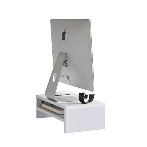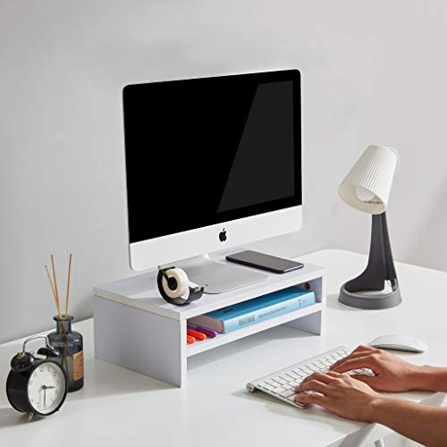 Sunon - حامل شاشة الكمبيوتر، منظم تخزين خشبي لسطح المكتب، حامل تلفزيون صغير للاب توب والطابعة والكمبيوتر من سونون، 54 × 23.5 × 14.5 سم (أبيض)
