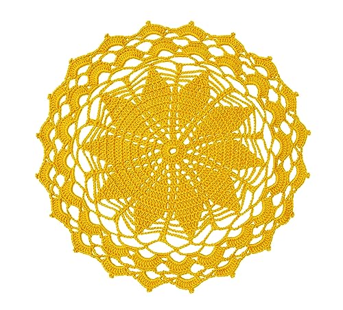 SUNONE11HKA - مفرش طاولة كروشيه من الدانتيل مقاس 30.4 سم من صن ون، مفرش طاولة قابل للغسل للمطبخ بتصميم أوراق شجر مستديرة (أصفر، 1)، موديل 11HKA