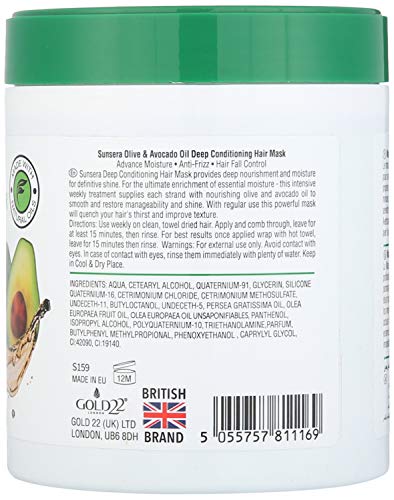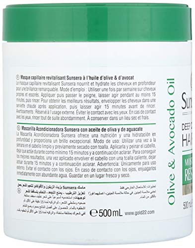 Sunsera - ماسك مرطب للشعر الجاف والباهت بخلاصة زيت الزيتون والافوكادو من صنسيرا - 500 مل