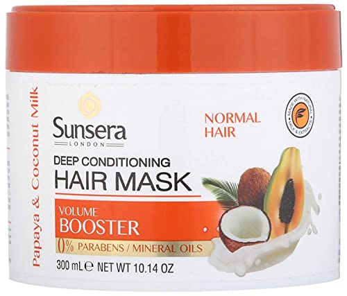 Sunsera - ماسك بلسم للشعر العادي بخلاصة البابايا وحليب جوز الهند لترطيب عميق من صنسيرا - 300 مل