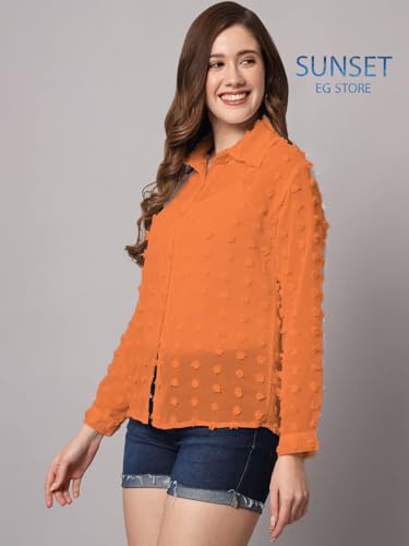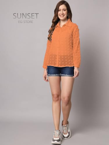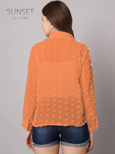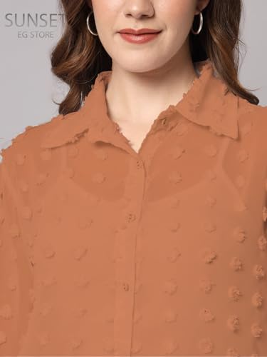 SUNSET EG STORE - بلوزة شيفون شفافة سادة للنساء من صن سيت اي جي ستور (لون بني، مقاس M)