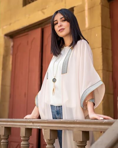 SUNSET EG STORE - بشت كيمونو قفطان عبايه رمضان شيفون من صن سيت مطعمة بجبير