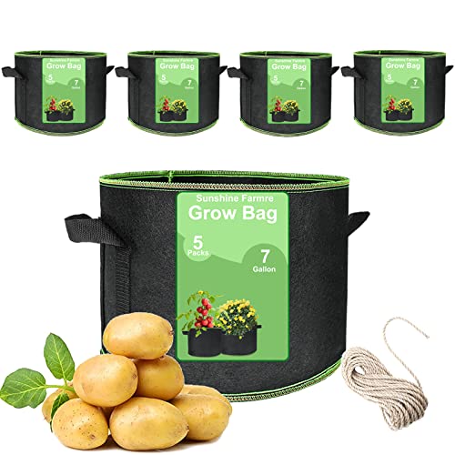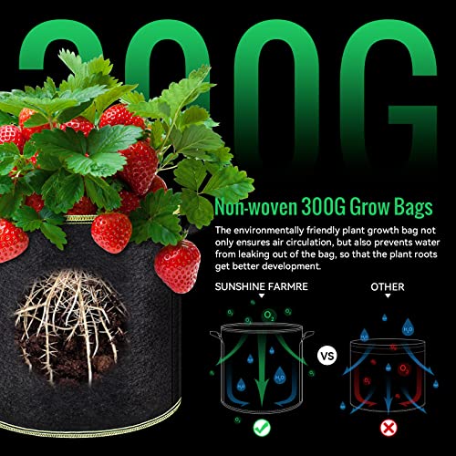 SUNSHINE FARMRE - كيس نمو نباتات سعة 7 جالون من قماش سميك شديد التحمل وغير منسوج مع مقابض وحبال ماصة للماء صن شاين فارمر مجموعة 5 اسود أحمر