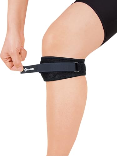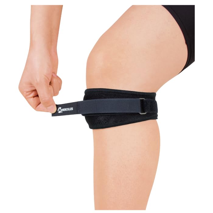 Sunshine Nutrition - حزام ركبة هيركوليز لعلاج ركبة القافز | قابل للتعديل، مزود بوسادة جل لتوفير ضغط إضافي ودعم وتثبيت أفضل للركبة | إغلاق بشريط فيلكرو | مناسب للجنسين من البالغين والمراهقين من صن شاين نيوتريشن | مقاس واحد
