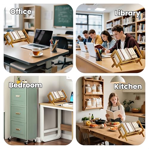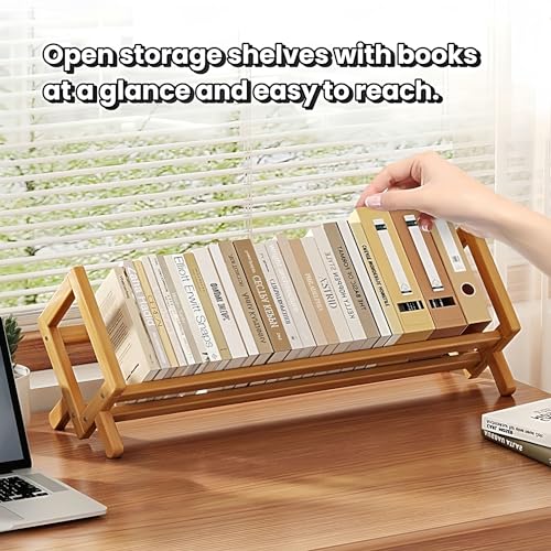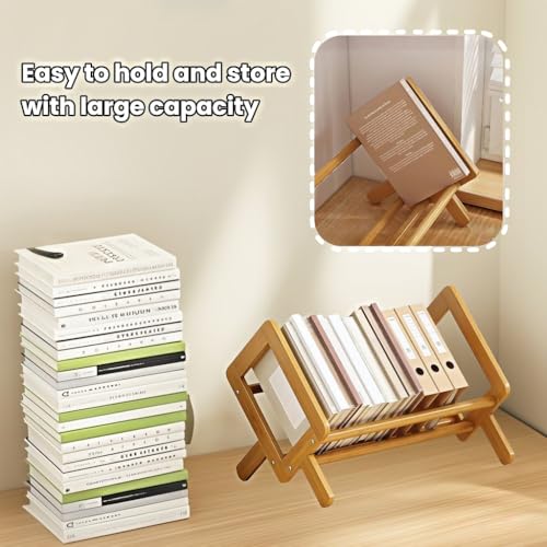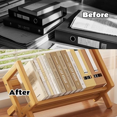 SunshineFace - مكتبة كتب خشبية قابلة للإمالة، رف منظم للكتب لسطح المكتب، حامل تخزين صغير مبتكر للكتب والمجلات وأقراص CD من صن شاين فيس