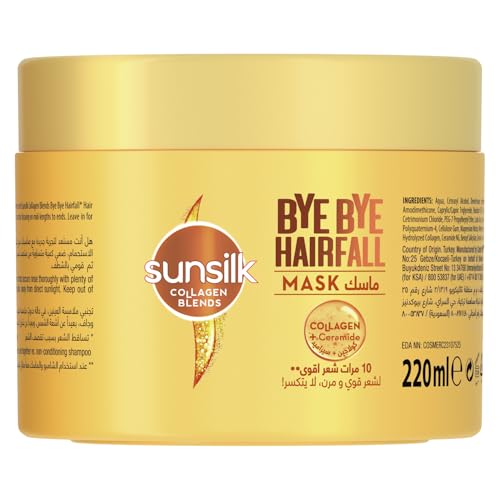 Sunsilk - قناع الشعر صن سيلك كولاجين بلندز خالٍ من الكبريتات، وداعاً لتساقط الشعر مع الكولاجين والسيراميد، لشعر أقوى ومرن 10 أضعاف، 220 مل