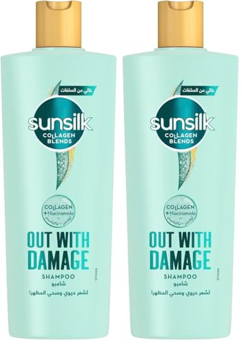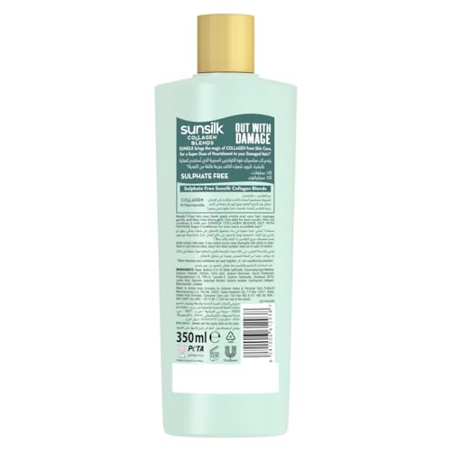 Sunsilk - صانسيلك شامبو كولاجين بليندز خالي من الكبريتات، خال من التلف، مع الكولاجين والنياسيناميد، لتغذية الشعر واصلاحه، 350 مل (عبوة من قطعتين)