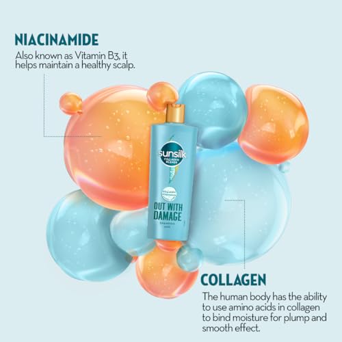 - صانسيلك شامبو الكولاجين يمزج مع التلف يجلب سحر الكولاجين من العناية بالبشرة، للحصول على جرعة فائقة من التغذية لشعرك التالف.