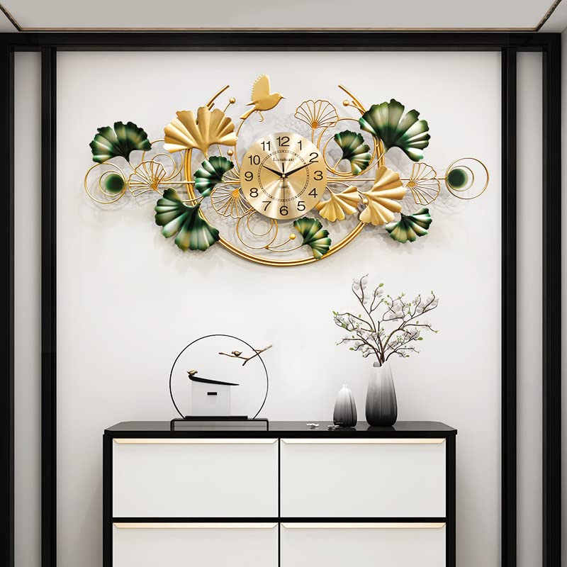 SUNVALLEY - ساعة حائط معدنية من سونفاللي للمنزل وغرفة المعيشة النوم والصالة وقاعة الطعام [102× 56 سم] 18 ذهبي تناظري