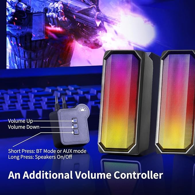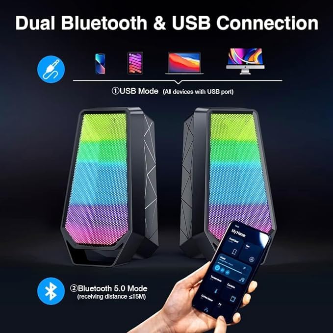 Generic - مكبر صوت للألعاب SW SP300 بلوتوث 5.0 منفذ AUX مع نظام ألوان RGB ستيريو بقناتين 5 وات وحدة تحكم 7 أوضاع إضاءة LED ملونة بنظام وصلة طاقة USB من صن ويند أسود