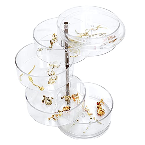 Suogkeale - منظم مجوهرات: 5 طبقات قابل للدوران صندوق مجوهرات صغير للحلقان للنساء، تخزين مع غطاء والسلاسل والاساور، من سوجكيل