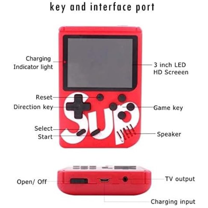 Sup - اتاري ساب ماريو جهاز ألعاب إلكترونية يحتوي على 400 لعبة مختلفة وبطارية قابلة للشحن ازرق