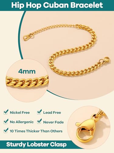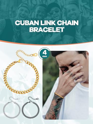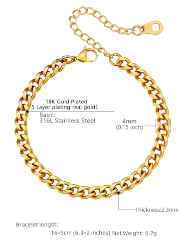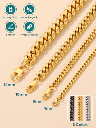 Supcare - سب كير سوار سلسلة للرجال، 4/6/10/14 ملم، اساور سلسلة بحلقات كوبية من الستانلس ستيل/ذهبي/اسود، اساور ثقيلة مكتنزة 16/19/21 سم