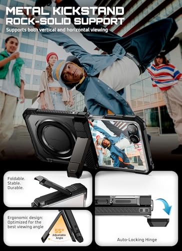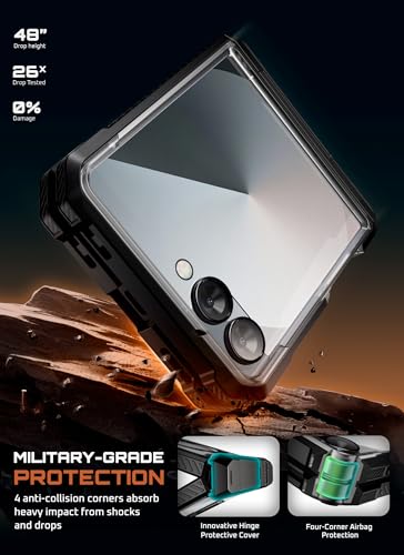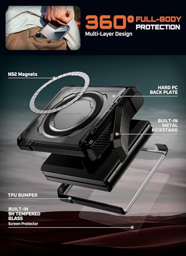SUPCASE - جراب حماية لموبايل سامسونج جالاكسي زد فليب 7 مع مسند وواقي شاشة (يو بي جريب) متوافق مع ماج سيف مع مفصلات بتصميم مغناطيسي لكامل الجسم وحماية من الدرجة العسكرية من سبكيس، لون أسود