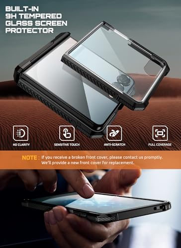 - [واقي شاشة أمامي]: مقاوم للخدش، واقي الشاشة الخارجي مصنوع من الزجاج المقوى عالي الدقة مع نفاذية الضوء ≥95%. سمك 0.33 ملم يحمي جهاز زد فليب 7 الخاص بك دون التأثير على حساسية اللمس.