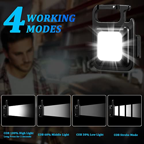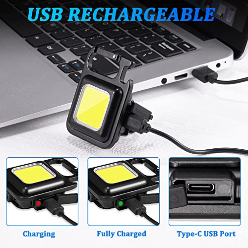 LNRYY - مصابيح يدوية LED على رقاقة بشريحة سي او بي فائقة السطوع لسلسلة مفاتيح، قابلة لإعادة الشحن وبـ4 أوضاع وصغيرة مناسبة للجيب وبفتاحة زجاجات وقاعدة مغناطيسية للتخييم والمشي لمسافات طويلة