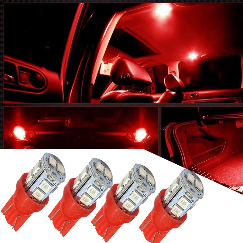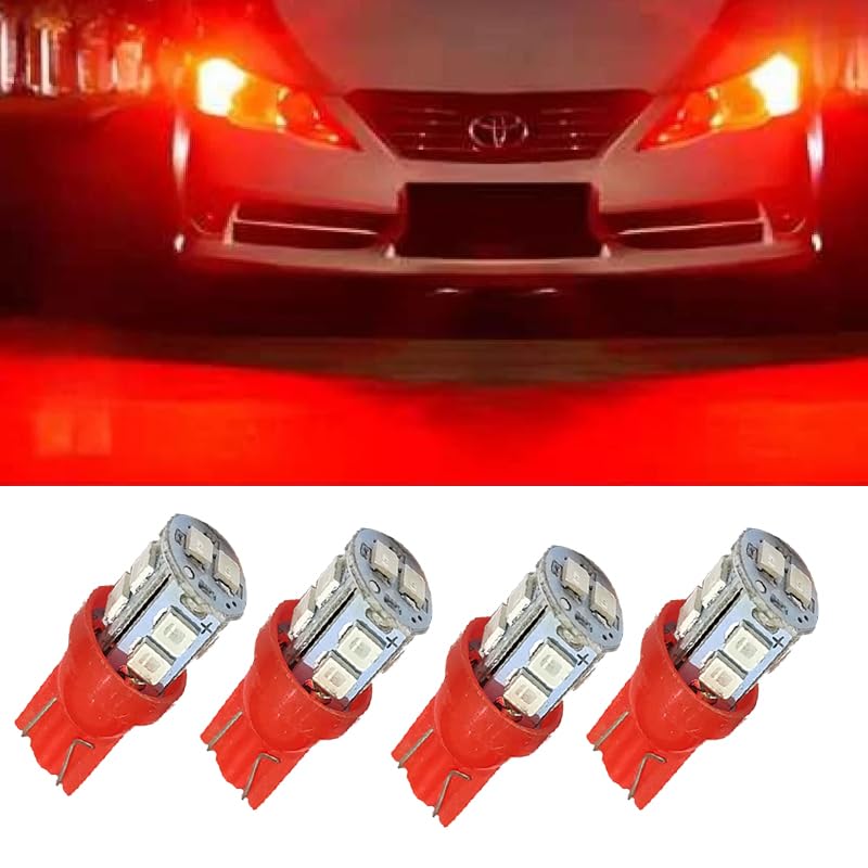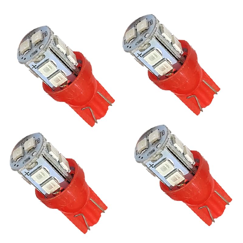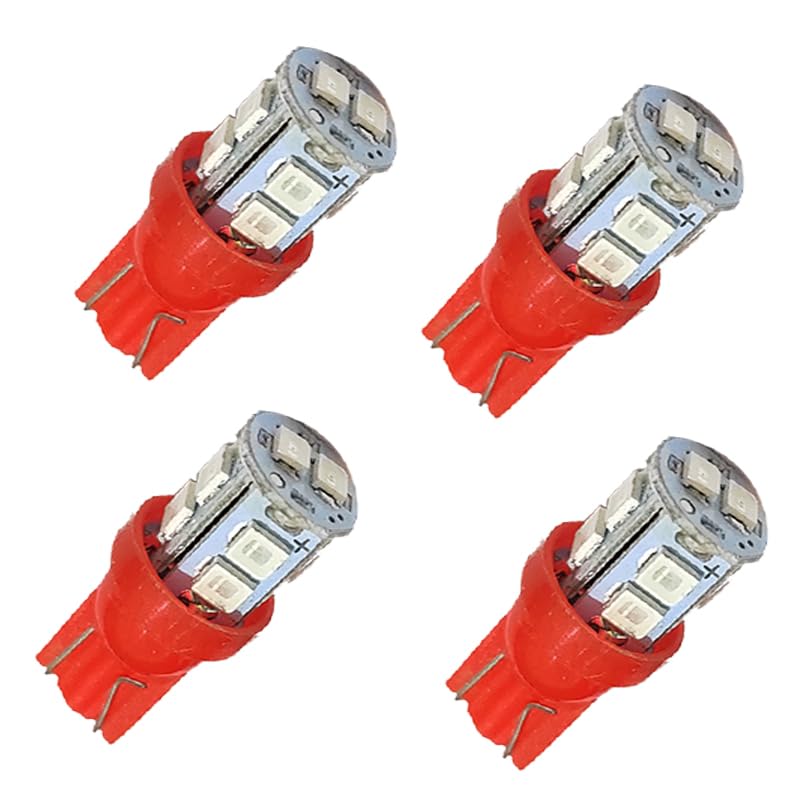 Generic - انوار توقف LED T10 شديدة السطوع لمقصورة السيارة الداخلية ولوحة الارقام والدراجات العادية والنارية، (اضاءة احمر ، 10 ليد ، 4 قطع ) - من كابر تريد