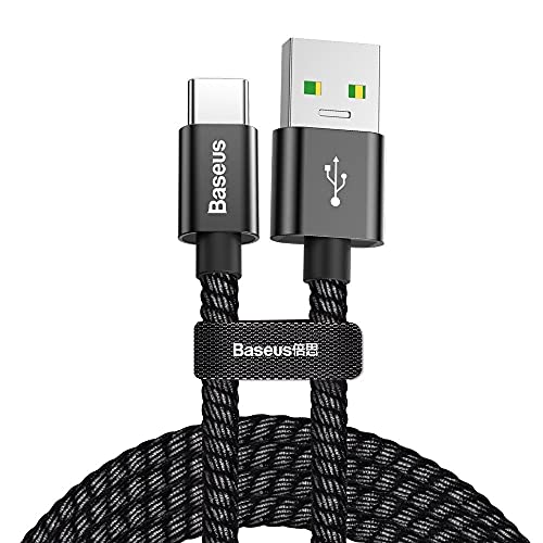 Baseus - كيبل USB C للشحن فائق السرعة 5 امبير من بيسيوس لسامسونج جالكسي نوت 10 بلس 20 الترا نوع بطول 1 متر لون اسود