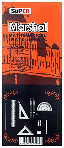 Super - مجموعة ادوات هندسية صندوق معدن من سوبر 9 قطعة متعدد الالوان