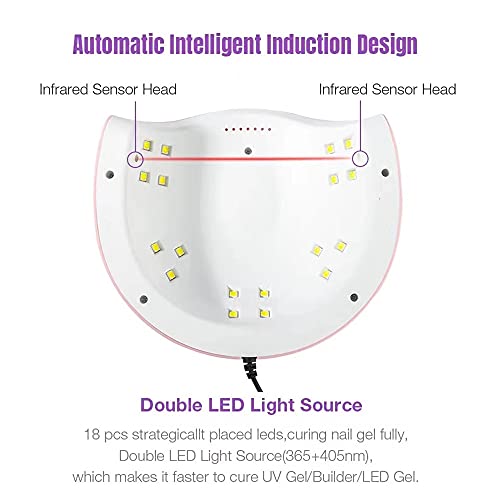 - مستشعر ذكي وحماية من درجة الحرارة: نظرًا لمستشعر الأشعة تحت الحمراء الذكي، يمكن أن يكون مصباح الأظافر مستشعرًا تلقائيًا. يتم تشغيل المصباح اليدوي وإطفاء الضوء. يوفر مصباح الأظافر LED الخاص بنا حماية من درجة الحرارة ليديك، مما يوفر تجربة جديدة تشبه صالون الأظافر.