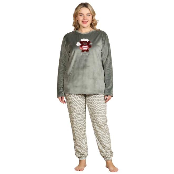 Generic - بيجامة قطيفة مبطنة سوبر لوكس، مقاس كبير، لون زيتي، تناسب حتى 100 كيلو