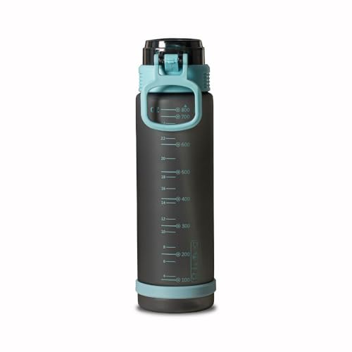 Generic - زجاجة مياه من البلاستيك الممتاز رياضية تحفيزية مع علامات للوقت مقاومة للتسرب مقبض غطاء قلاب وماصة لصالة الالعاب الرياضية واللياقة البدنية والمنزل والمدرسة والمكتب 800 مل تركواز