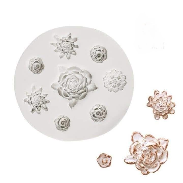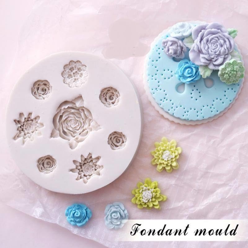 - قالب صناعة وتشكيل الحلوى شكل وردات صغيرة جدا متعددة الاحجام والاشكال لتزيين الكيك بالفوندانت والشيكولاتة