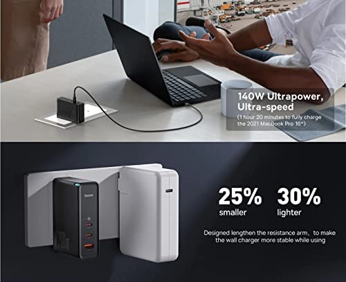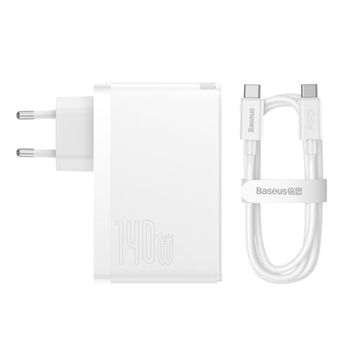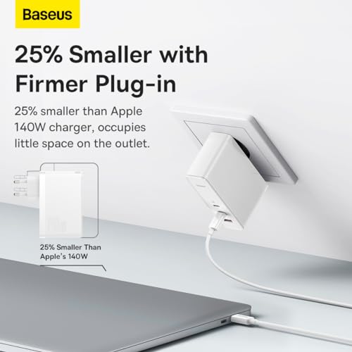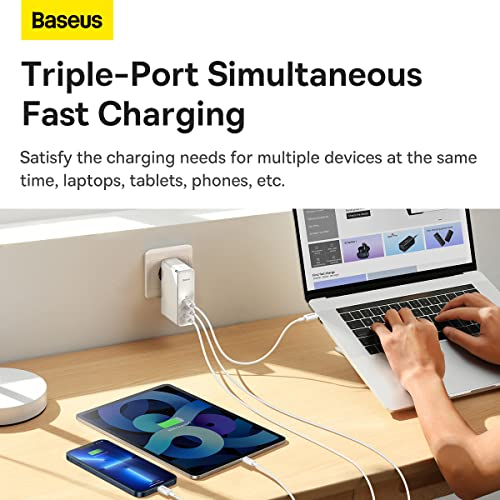 Baseus - شاحن باسيوس 100 واط، سلسلة شحن GaN5 برو ثاندر مع مخرج مزدوج لسلسلة ابل ايفون 15 و15 ماكس وسلسلة ماك بوك وايباد اير وايربودز وشاشة (أبيض)