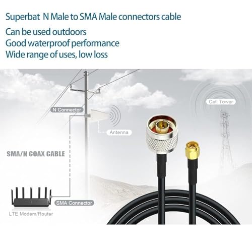 Superbat - سوبربات كيبل تمديد محوري من النوع ان الى اس ام ايه ذكر لراديو ADS-B/هام / هوائي واي فاي او مانع اندفاع التيار 15 قدم