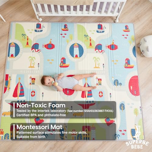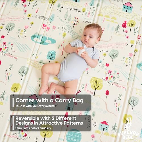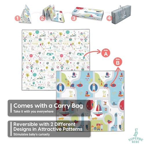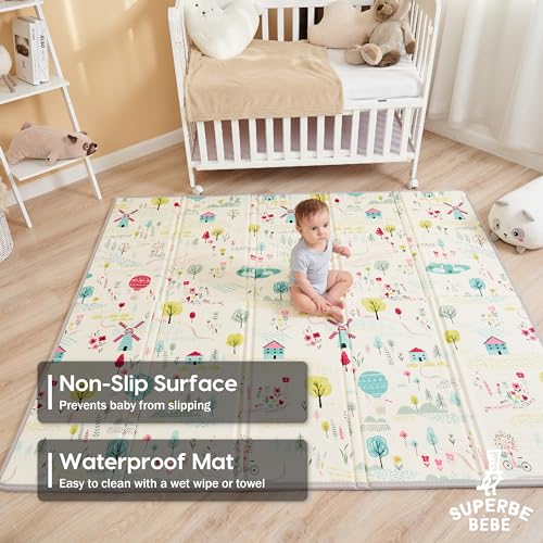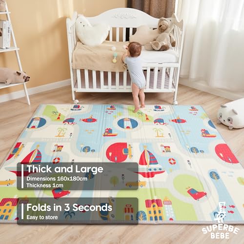 SUPERBE BEBE - سجادة أطفال قابلة للعكس وغير سامة وسميكة وقابلة للطي ومقاومة للماء ومناسبة للعب والزحف من سوبر بيبي، مقاس 1.6 متر × 1.8 متر × 1 سم