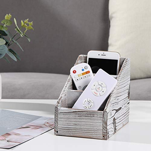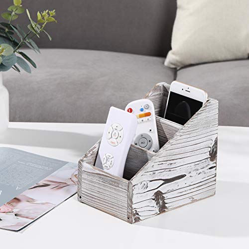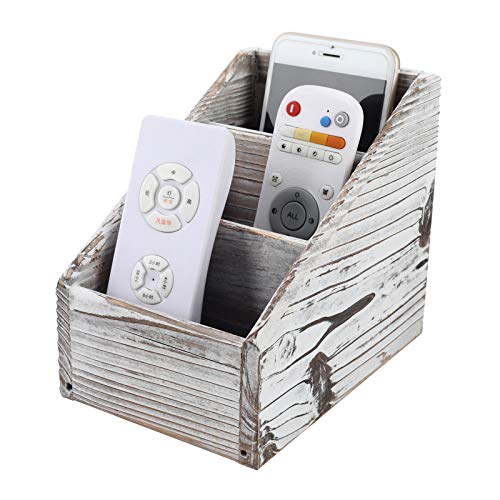 - حامل خشبي ريفي لجهاز التحكم عن بعد مع لمسة نهائية مشتعلة باللون الأبيض