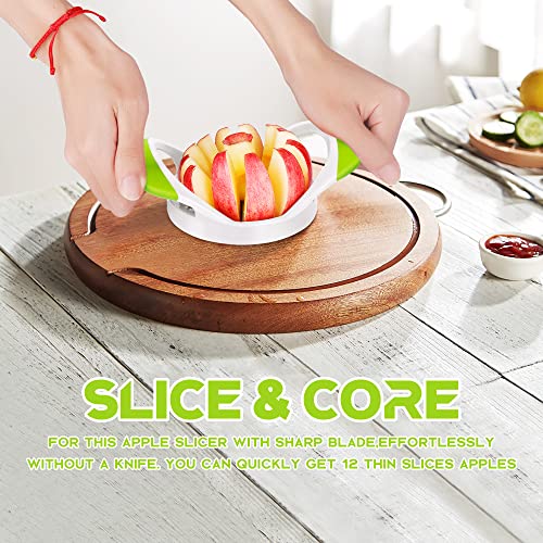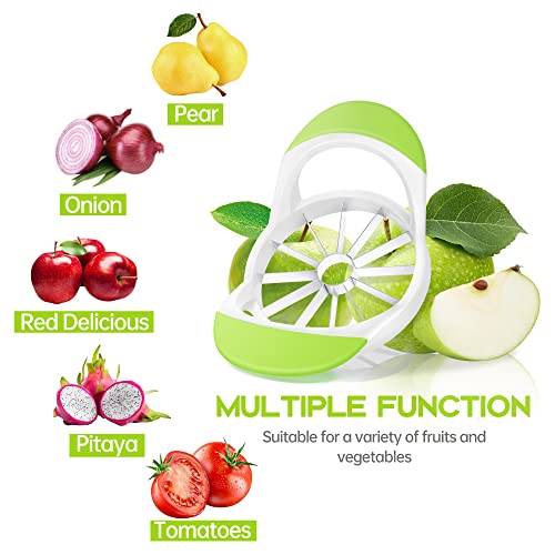 - مقاس كبير - قطر يصل إلى 4.72 انش، أكبر من علامة تجارية أخرى! ستوفر لك قطاعة وقطاعة التفاح هذه الوقت لإزالة قلب التفاح على الفور وفي الوقت نفسه تقسيمه إلى 12 قطعة رفيعة. مناسبة لمجموعة متنوعة من الفواكه والخضروات.