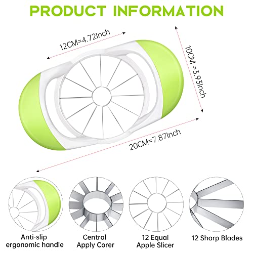 Supercenter - سوبر سنتر اداة تقطيع التفاح وقطاعة التفاح - اداة تقطيع التفاح من الستانلس ستيل - اداة تقطيع التفاح 4.72 انش مع 12 شفرة حادة للغاية، قطاعة تفاح خفيفة الوزن مع مقبض مضاد للانزلاق