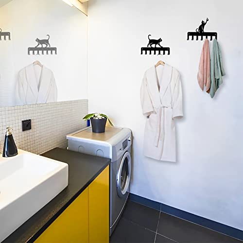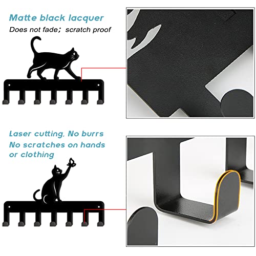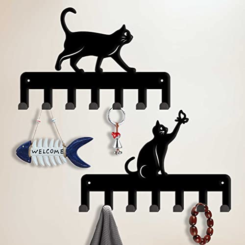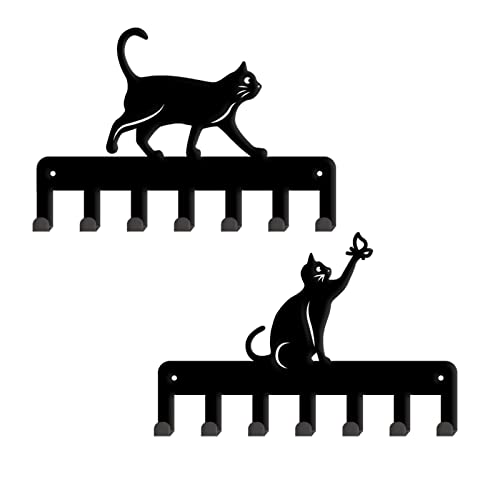 SUPERDANT - سوبردنت مجموعة حامل مفاتيح بتصميم قطط على شكل حيوانات مع 7 خطافات للتعليق الحائط فراشة يثبت من الحديد الاسود لتزيين المنزل والشنط والملابس والمفاتيح والمناشف وديكور، حديد معدن