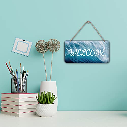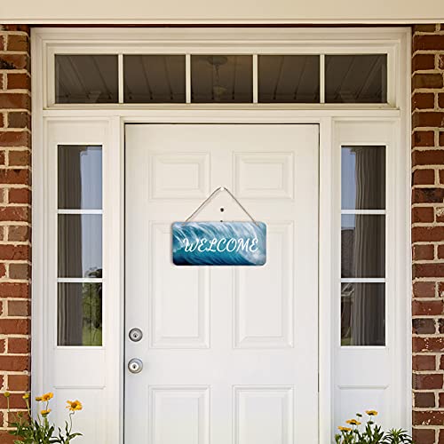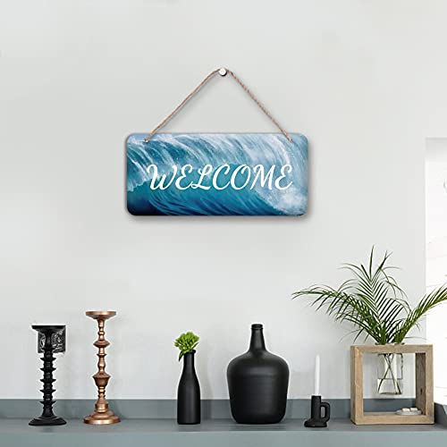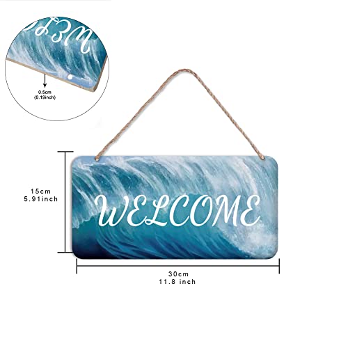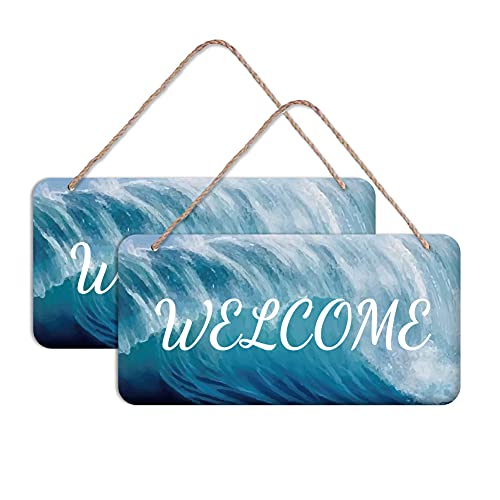 Generic - لافتة باب جدارية مستطيلة مزينة بكلمة Welcome لافتة بنقشة المحيط، لافتة خشبية ريفية مع خيط تعليق قطعة ديكور لباب المنزل أو المزرعة أو الشرفة أو الفناء، 30 × 15 سم، من سوبر دنت 2 قطعة