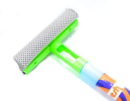 - مسّاحة مطاطية مع زجاجة سبراي مدمجة، قابلة لإعادة الملء واسفنجة مايكروفايبر.