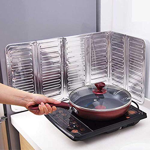 SuperDuo - لوح واقٍ من رذاذ الزيت للطبخ، 3 شرائح قابلة للطي، من الألومنيوم العازل للحرارة، مستلزمات مطبخ من سوبر ديو