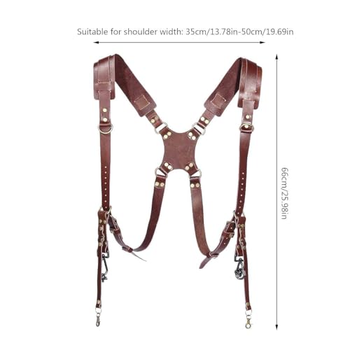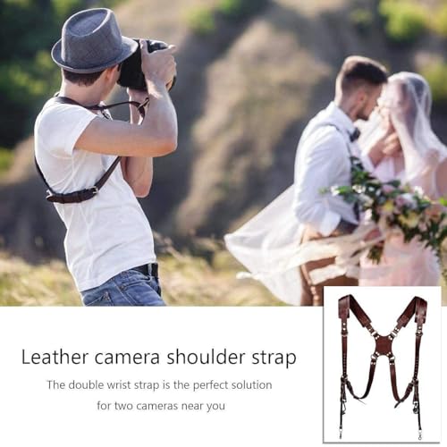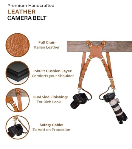 SUPERNIC - حزام كاميرا من سوبرنيك لكاميرتين/ حزام جلدي مزدوج الكتف/ معدات كاميرات متعددة لكاميرا DSLR/SLR كلاسيك تان مع قطعة قماش من المايكروفايبر