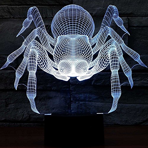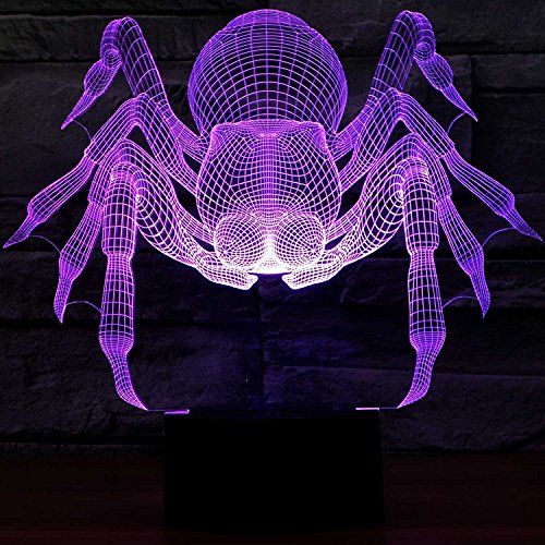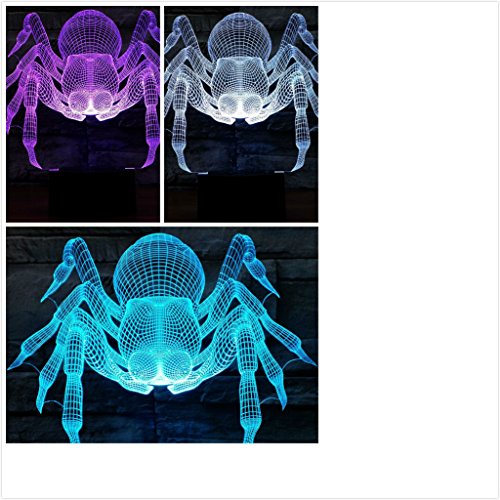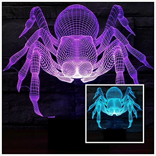 SUPERNIUDB - سوبرنيود مصباح ليلي بتصميم مبتكر يجسد عنكبوت ثلاثي الابعاد باضواء خيالية وبسبعة الوان متغيرة، متعدد الألوان