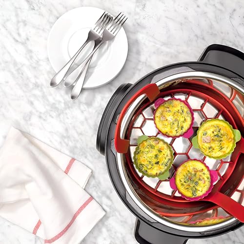 • تم تصميم حامل أدوات الطبخ بالضغط الأحمر لرفع أدوات الخبز وأكواب الخبز وأكثر من 6 إلى 8 كوارت وأواني الطهي المتعددة بسهولة. يضمن هيكلها المتين أنه يمكنك استرداد أطباقك بأمان دون أي فوضى أو تحسس، مما يجعلها ملحقًا أساسيًا لأي شخص يستخدم طنجرة الضغط بانتظام لإبداعاته في الطهي.