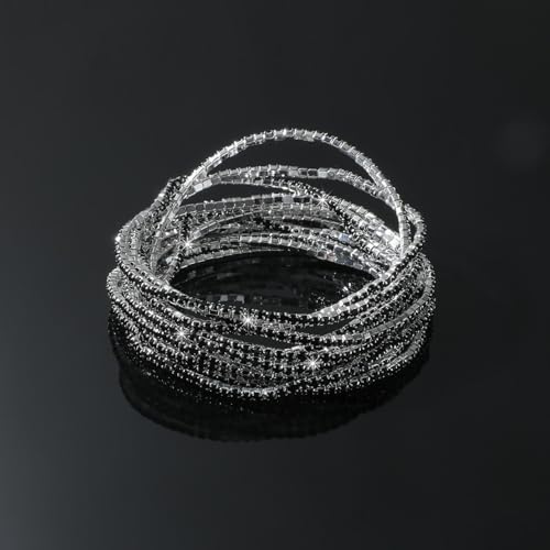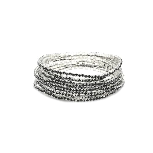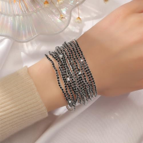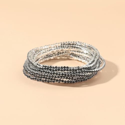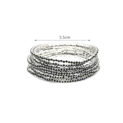 generic - 9 قطع سوار مطاطي مرصع باحجار الراين للنساء من سوبرا ديامانتو، سوار بوهو متعدد الطبقات قابل للتكديس للنساء، مجموعة اساور من حجر الراين، مجوهرات الزفاف هدية عيد الميلاد (JB3132S-BK)
